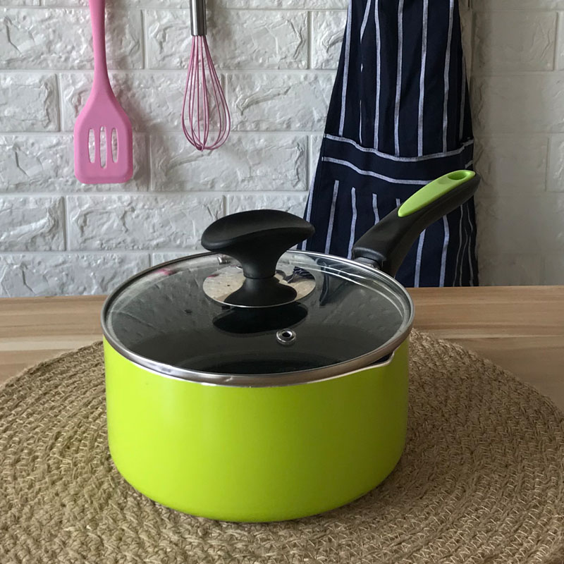 14cm small milk pot color random 16cm purple milk pot 16cm black with lid 18cm black with lid 16cm pink with lid 26cm red frying pan with lid 14cm frying pan (