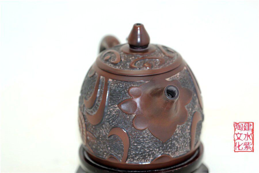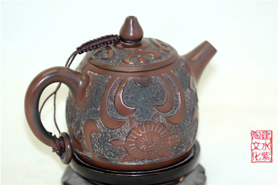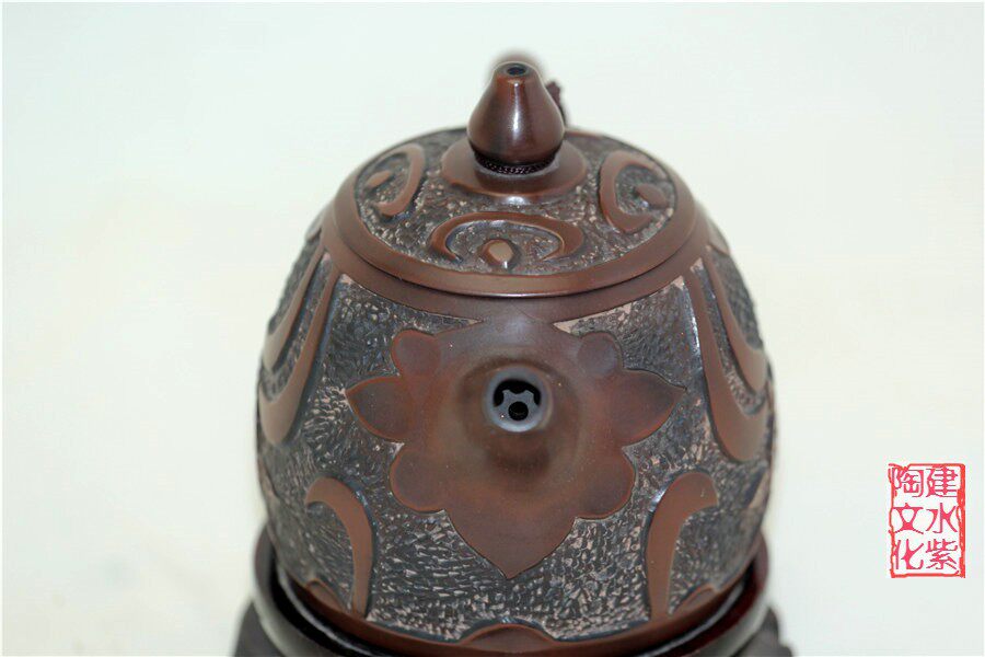 Chinese named pottery water purple pot all hand-made Yi cultural heritage of the late master Yang Lin relief