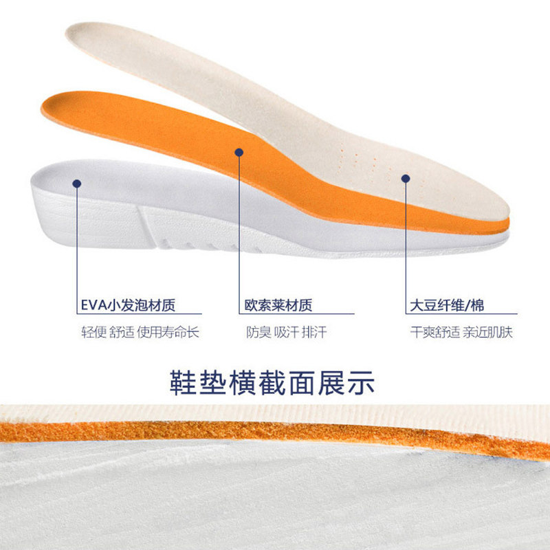 Inner heightening insole full cushion male and female soy fiber soft bottom comfort not tired feet sneakers Martin boots heightening cushion