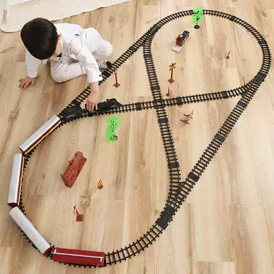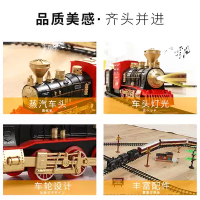 Simulation retro steam train model parking lot Children electric train set Rail high-speed rail toy boy