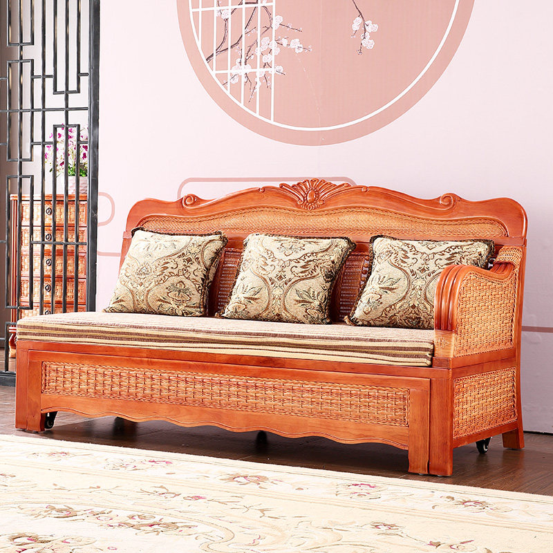 Rattan Sofa Composition Living Room Trio Sofa L Type Rattan Sofa Corner Small Household Type Multifunction Push-and-pull Sofa Bed