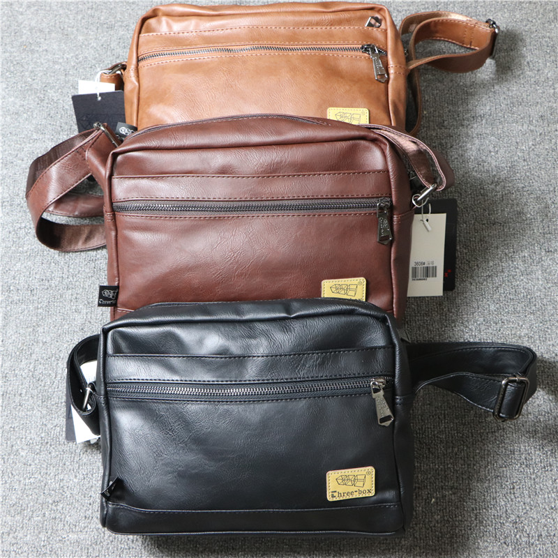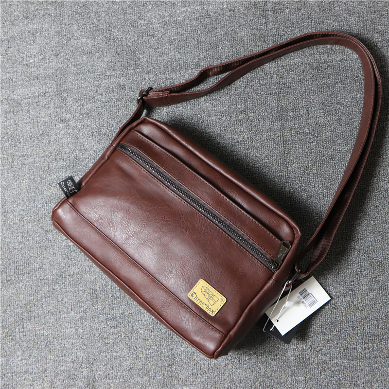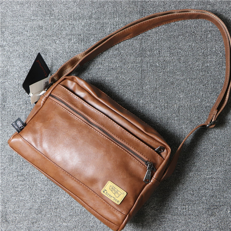 threebox Korean version day ensemble men's bag casual Japan-Japan cross section men's single shoulder bag retro soft leather women's slanted satchel