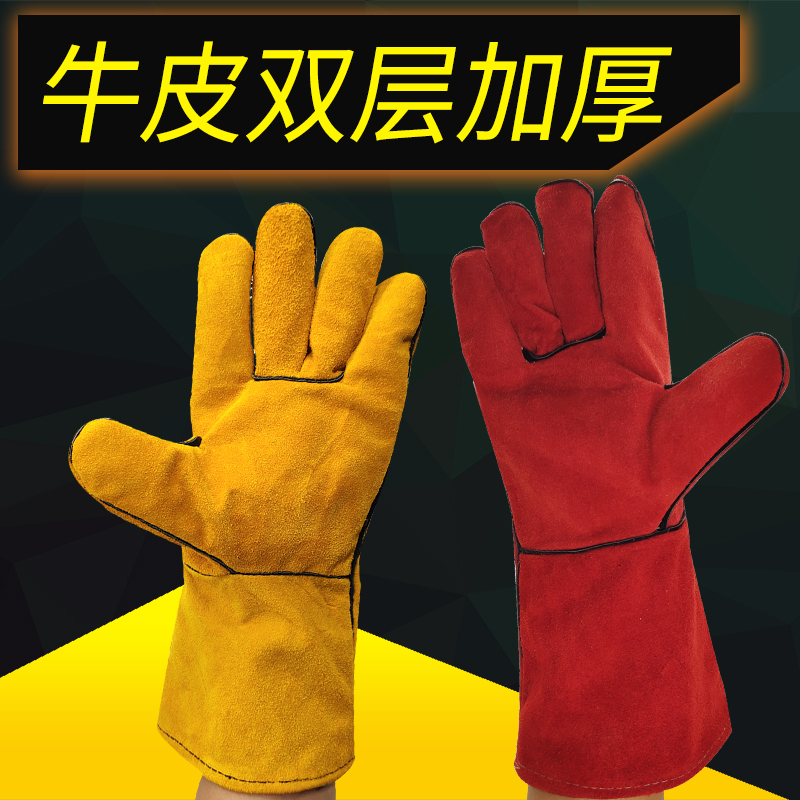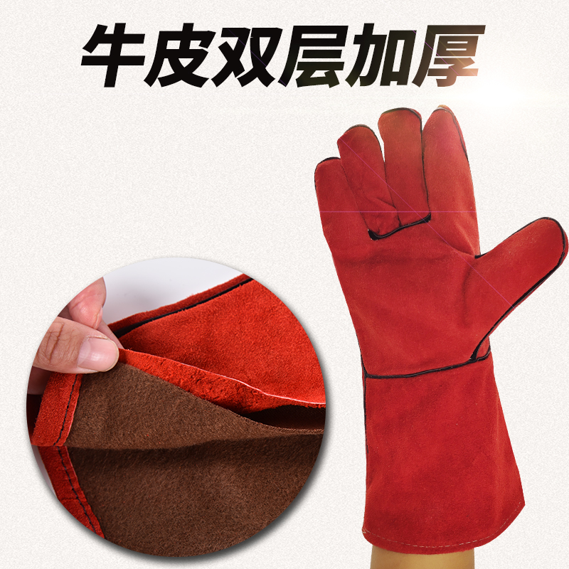 Welding gloves cowhide high temperature resistant long leather welder special welder anti-scald wear-resistant soft cowhide labor insurance welding