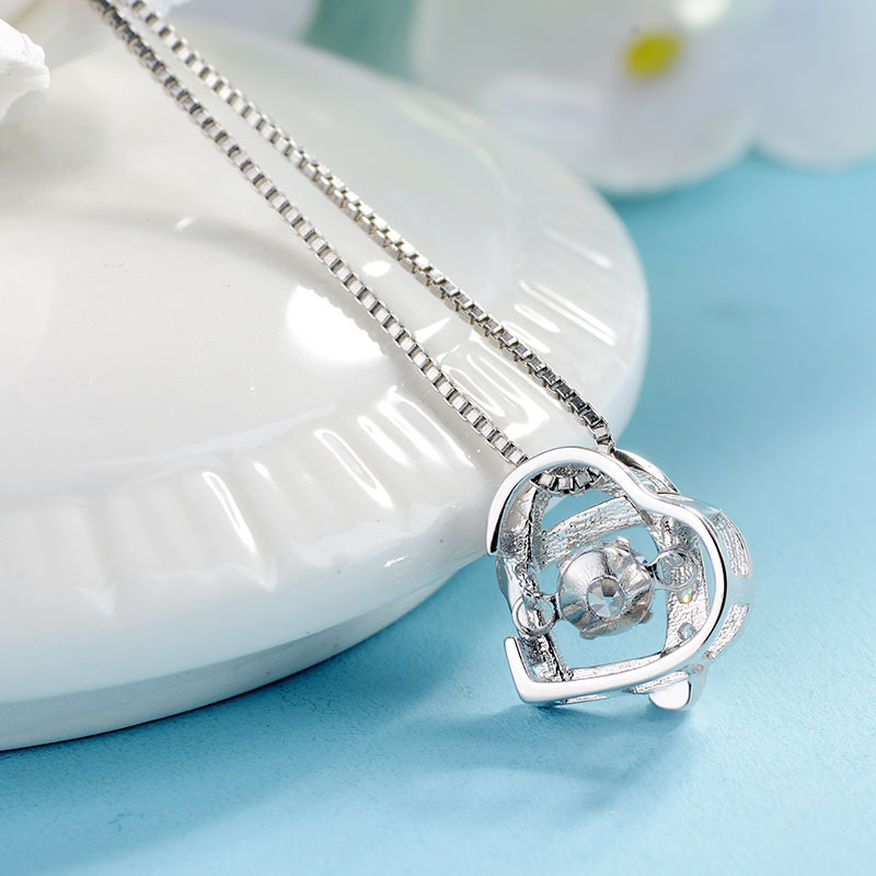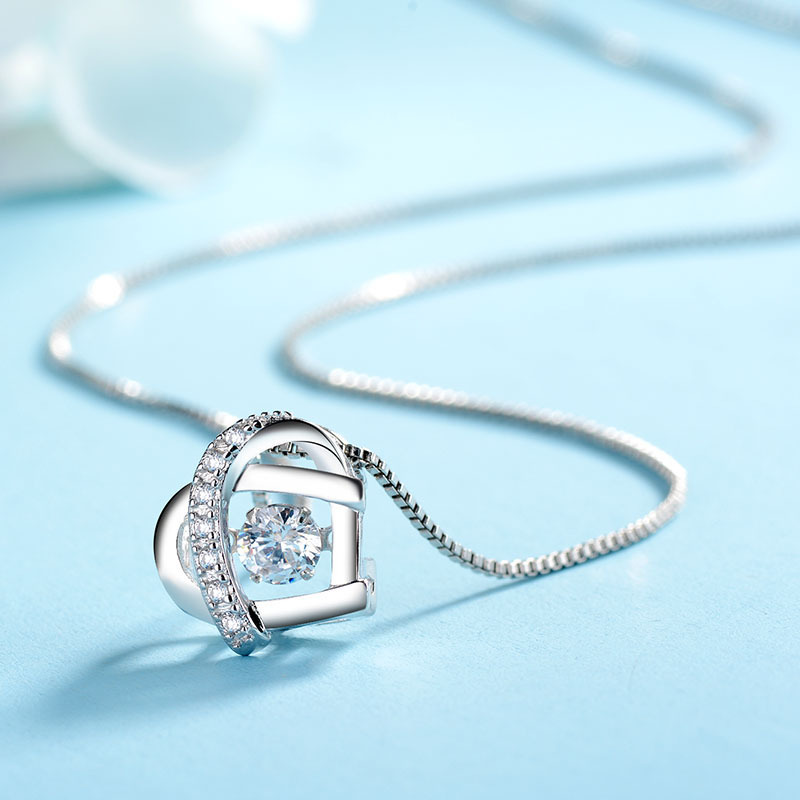 Simple Heart Shaped Diamond Pendant S925 Sterling Silver Necklace Girlfriend Gift