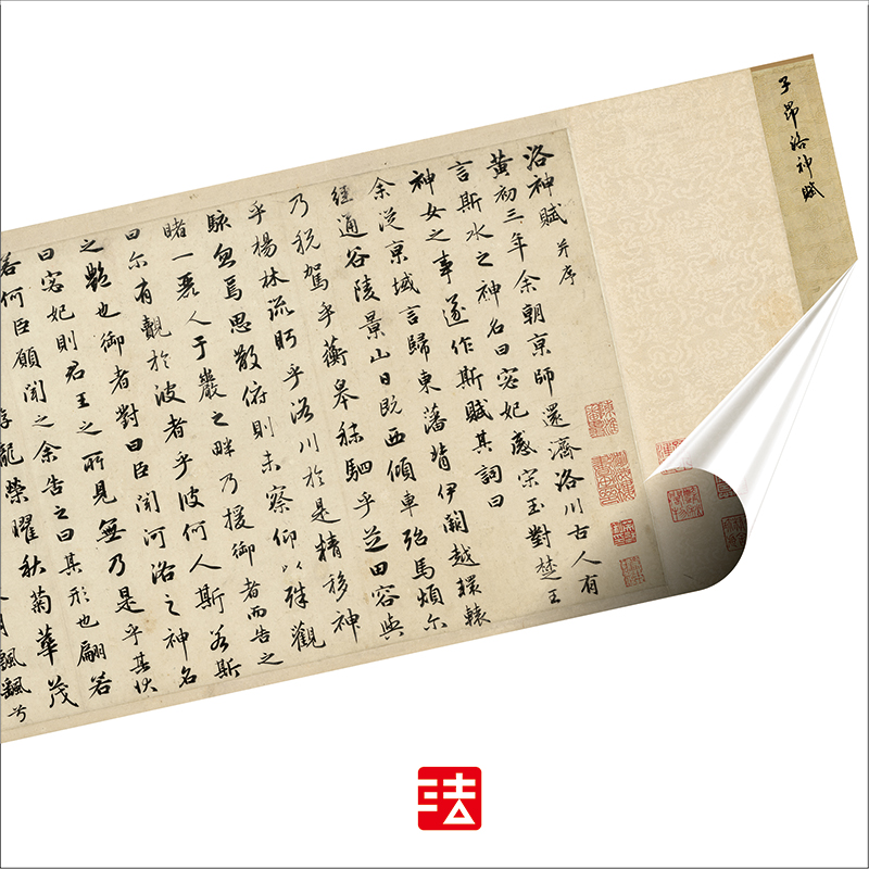 Zhao Mengfu Luoshen Fu full volume real 1:1 ultra-clear copy running script copybook calligraphy hanging painting decorative painting silk long scroll