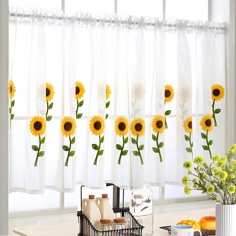 Wearing Rod type Tripylon ladybug coffee curtain (without pole) wearing rod type terpolyamide sunflower coffee curtain (without pole)
