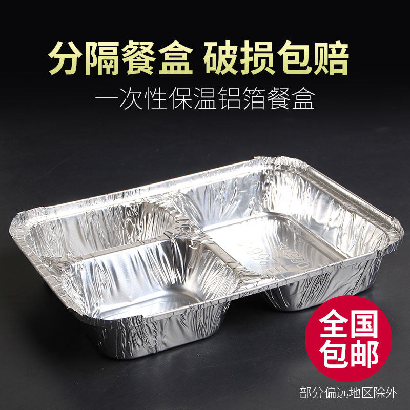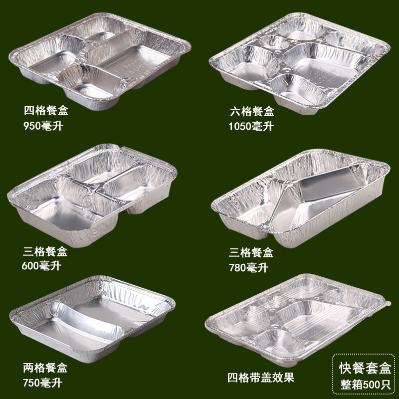 Takeaway fast food box lunch box divided lunch box tin foil box multi-grid aluminum foil disposable two-grid three-grid four-compartment packing box