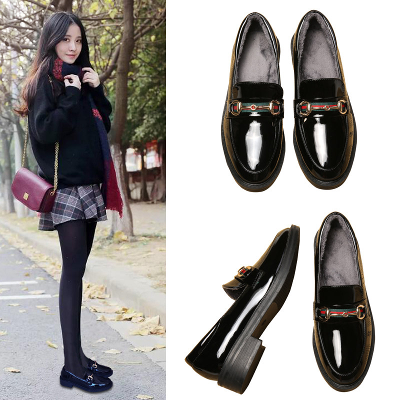 Black patent leather horse street buckle plus velvet Black patent leather horse street buckle single black matte horse street buckle plus velvet