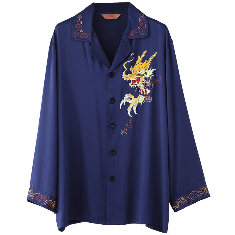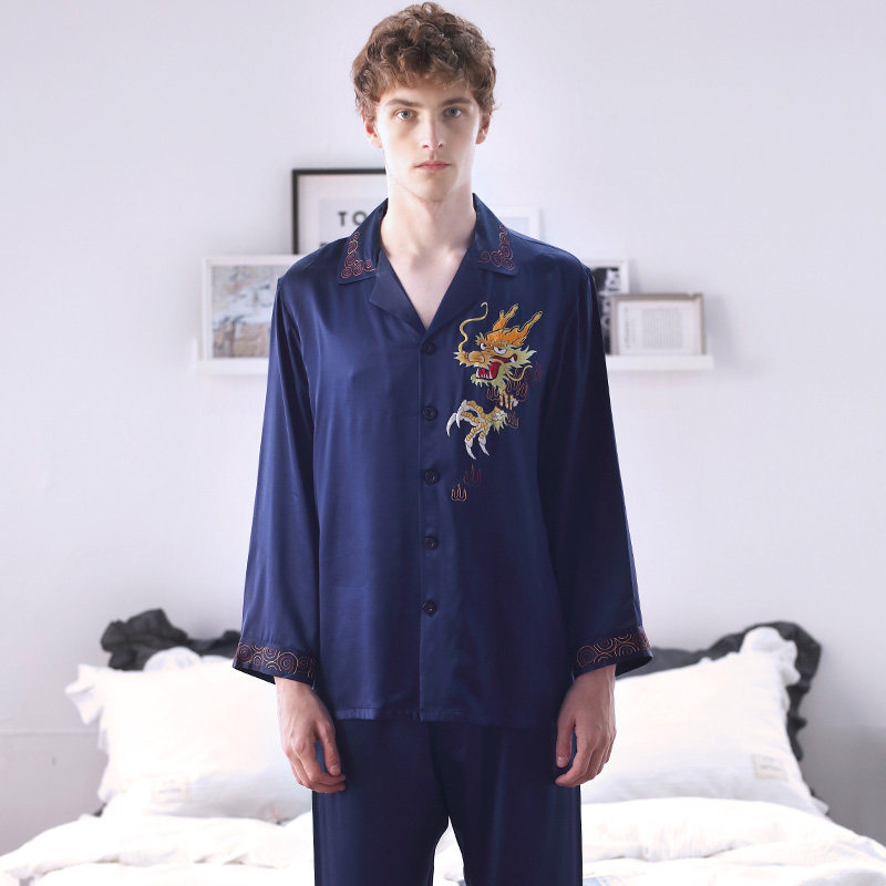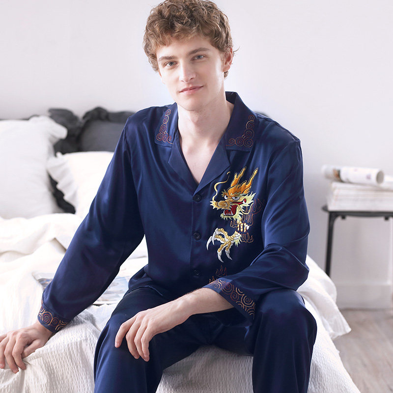 Dalli autumn winter pyjamas man long sleeve long pants brief mulberry silk genuine silk embroidered casual suit home clothes