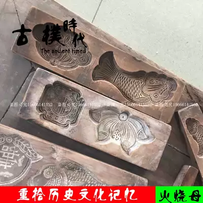 Folk custom old objects fire mold folk hand carved old moon cake mold personality creative ashtray old wood carving