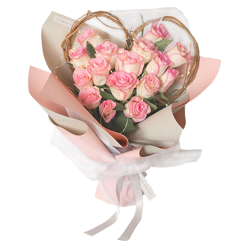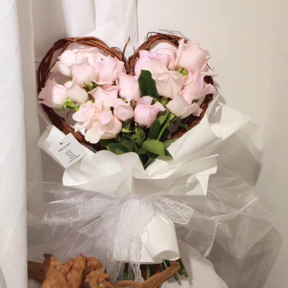 Heart-shaped loving bouquet with material vine heart-shaped gardener arrowed flowers and dry willow