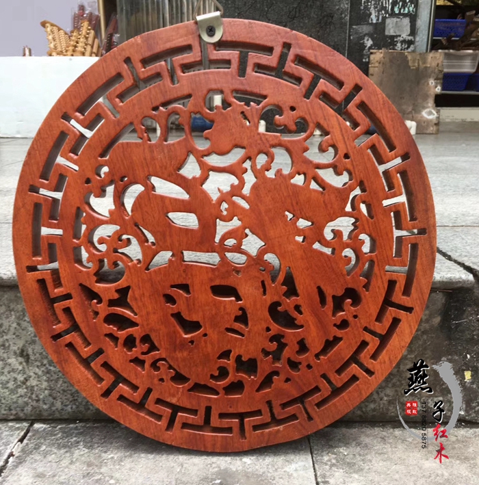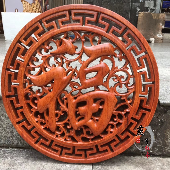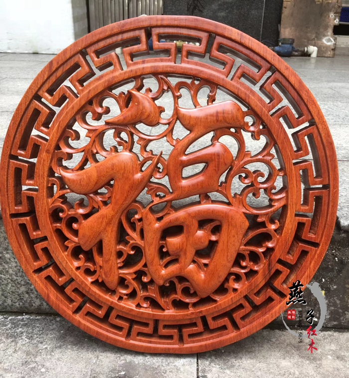 Mahogany wood carving blessing word hanging flat pear wood carving painting Chinese style decoration wall hanging background wall decoration solid wood carving blessing word