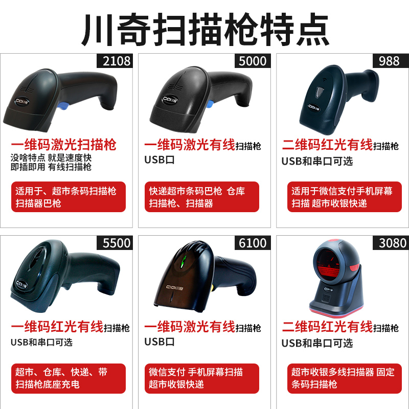 Sichuan Chili A98 Laser Wired Scanner Chuanqi 2108 Laser cable Scanning Kahuan Chi 2108 Laser Wired Scanning Bracket Sichuan Chi K5000 Laser Wireless Scanning Sichuan Chi W6600 Red
