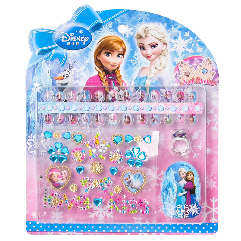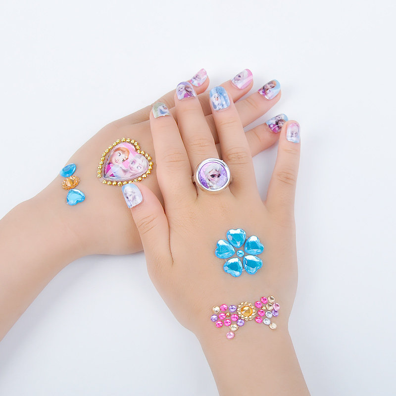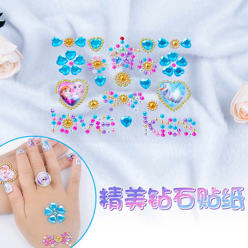 Children's nail stickers for girls safety cartoon three-dimensional nail art Princess Small three-dimensional gem crystal sticker paper Frozen