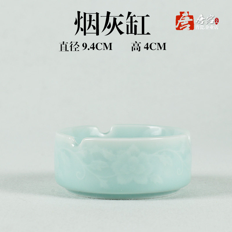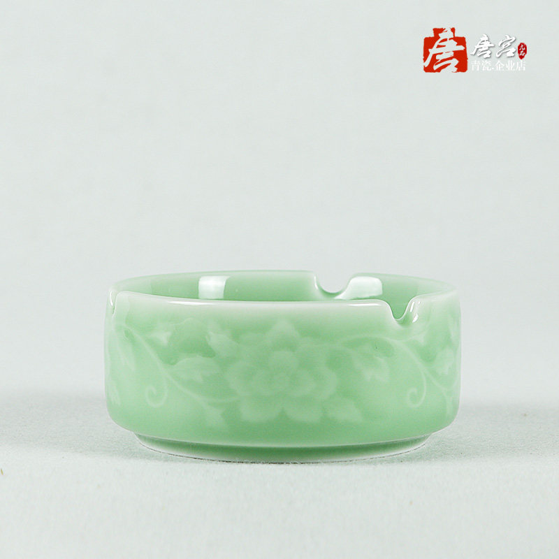 Dragon Springs Green Porcelain Smock with Peony Flowers Tangled Branches Tobacco Cylinder Tea Set Accessories Table Cigarette Ash Tray