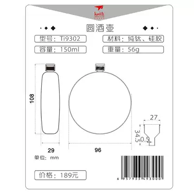 Keith Kaisi pure titanium home outdoor portable mini portable titanium wine jug custom lettering gift flat wine bottle