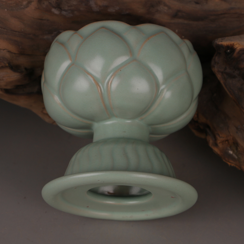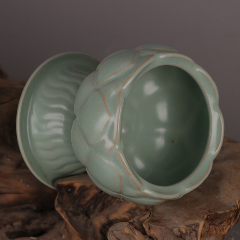 Northern Song Dynasty Ru kiln green glaze branch nail lotus incense burner imitation Song Dynasty hand-carved old goods antique antique decoration