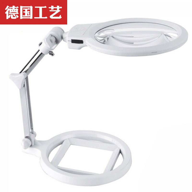 Zhicheng German craft with lamp desktop magnifying glass 20 oversized 130mm large lens 6 times old man reading 2 times 10 old age identification mobile phone circuit board table maintenance table lamp enlarged mirror 100