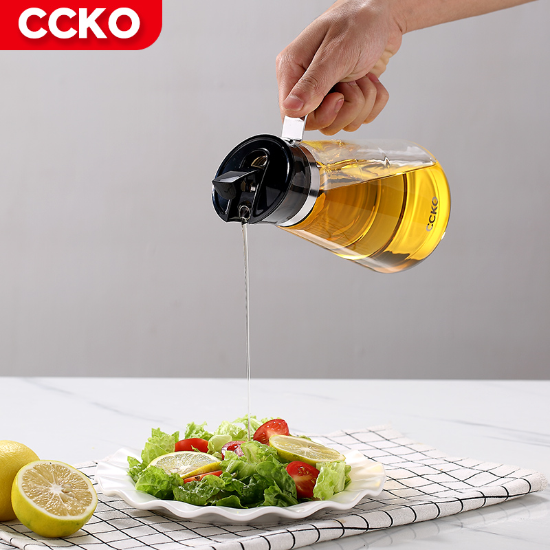 German Ccko Automatic Glass Oil Pot Home Anti-Leak Oil Tank Kitchen Oil Spray Bottled Transparent Large Capacity Oil Bottle