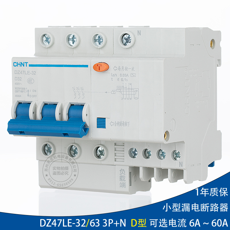 Zhengtai leakage circuit breaker DZ47LE-32 63 3P N D type 16a32A40a60A three-phase four-wire leakage protection