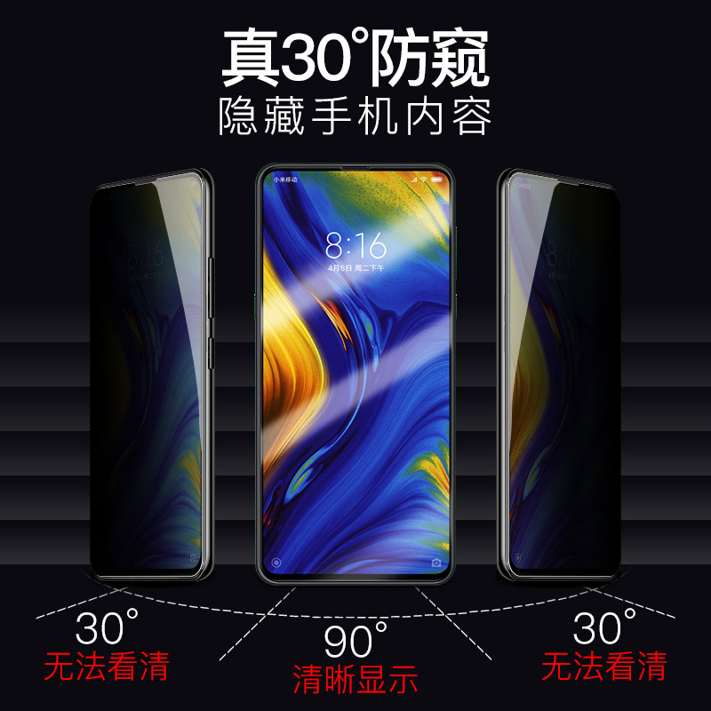 Xiaomi mix3 steel film mix2s anti-peeping film fullscreen covering max3 mobile phone protective film anti-peep blue light mix2 curved whole bag no white edge glass anti-peep fall original clothing anti-peep screen Palace version