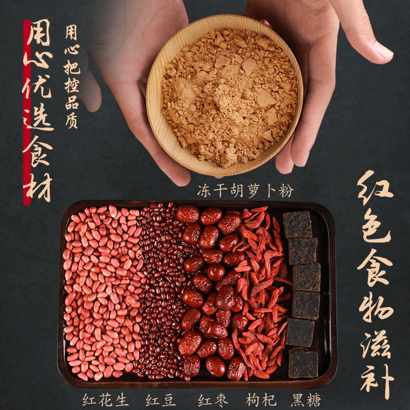 Red beans, red dates, peanuts, wolfberry, brown sugar, carrots