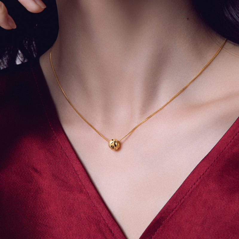 Six Kui Fu Jewelry Printed Gold Necklace Foot Gold 999 Pendant with Necklace Lock Bone Chain Necklace Necklace Woman