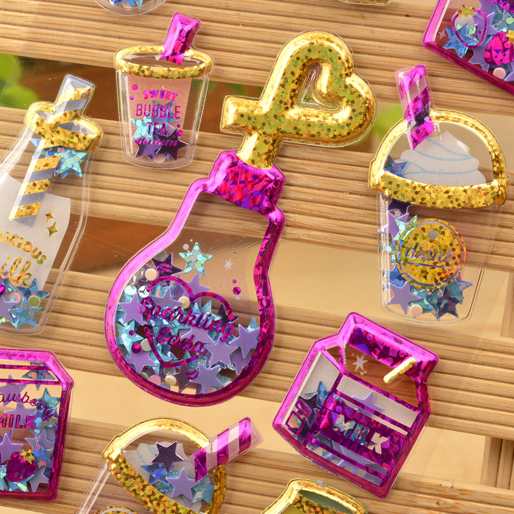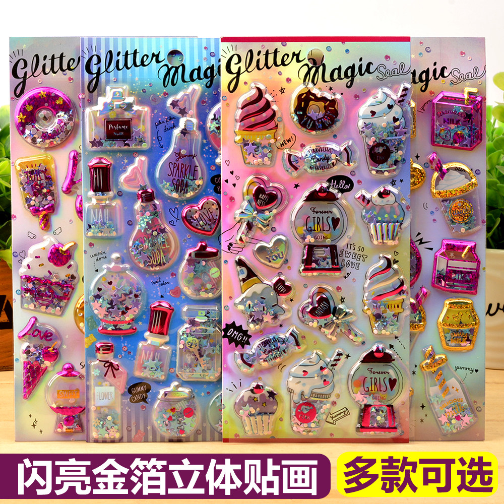Shiny bronzing cute shake stickers 3D three-dimensional crystal diamond gem stickers children's mobile phone shell decoration stickers
