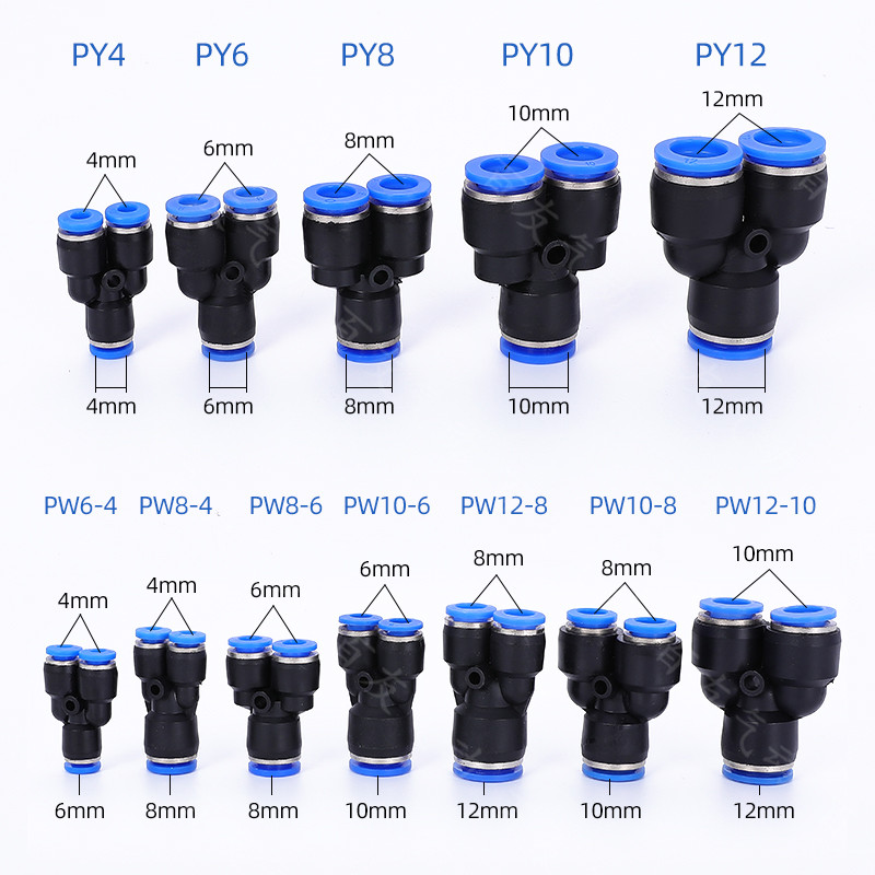 Quick plug PY connector three fork 3 plug Y-type three-way PY-4 6 8 10 12 14 16 PW6-4PW8-6 10-8