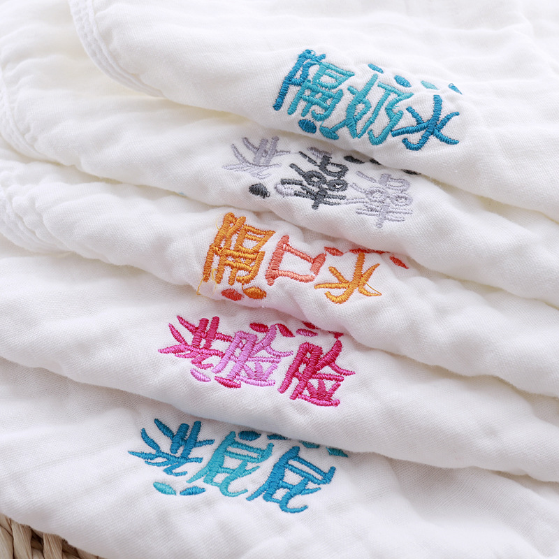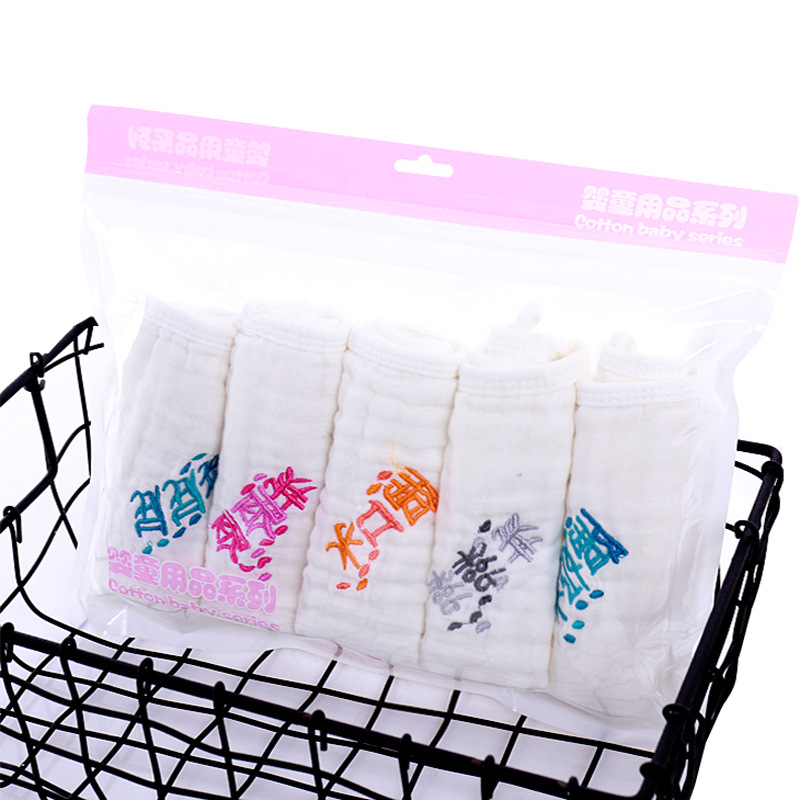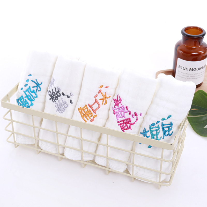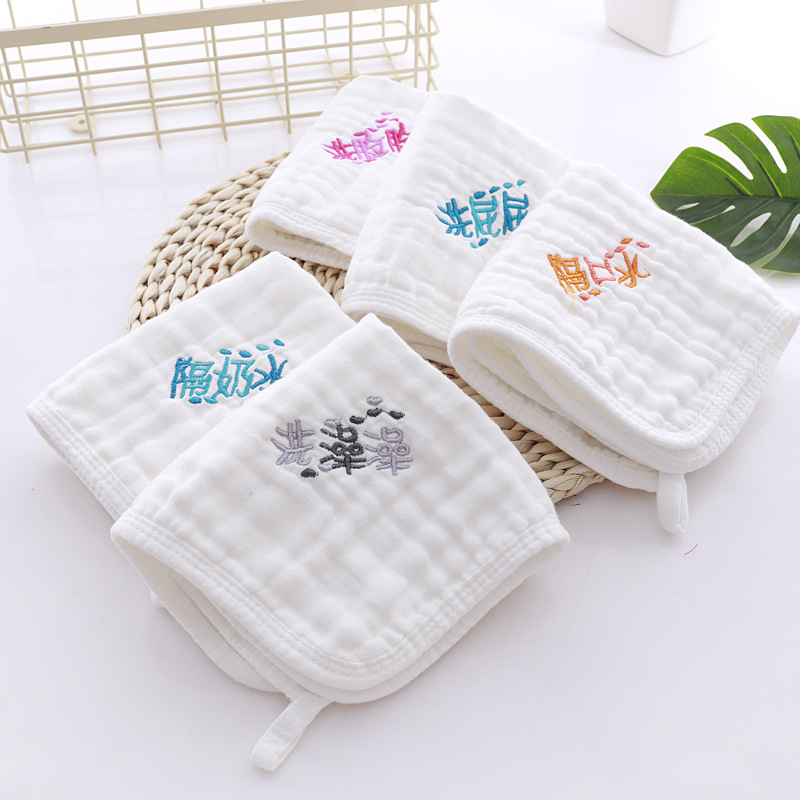 5 Baby cotton six layers of gauze embroidered small square towel newborn face towel mouth baby handkerchief