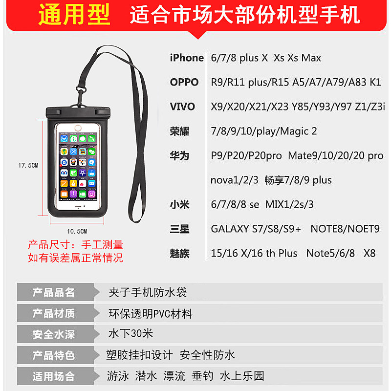 Mobile phone waterproof bag Swimming cashier bag touch screen Apple 6 7 8puls Huawei Universal spa bath Bath Seal Sleeve X