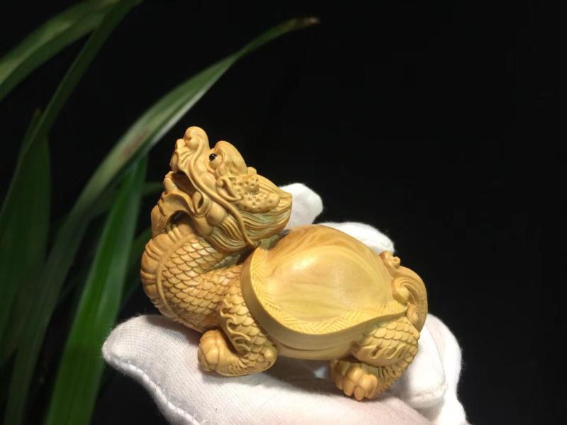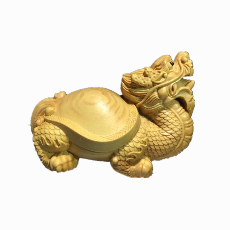 Yellow Poplar Wood Carving Pendulum Piece Town Residence Solid Wood Engraving Craft Gift Pendulum Decoration Gift Home Small Ornament Xiang Rui Beasts Solid Wood Dragon Turtle