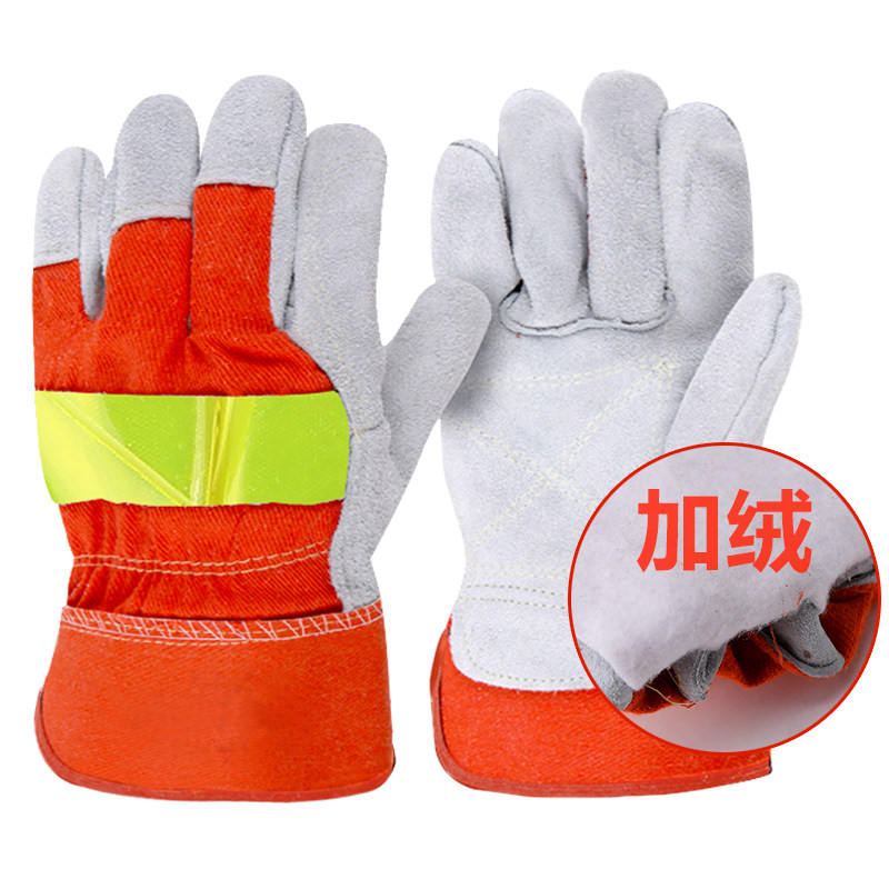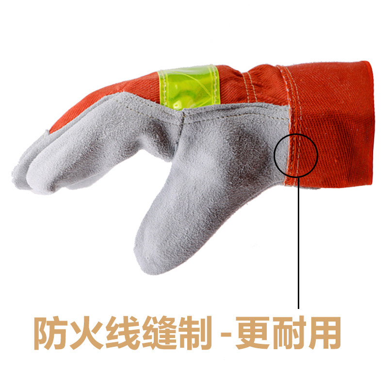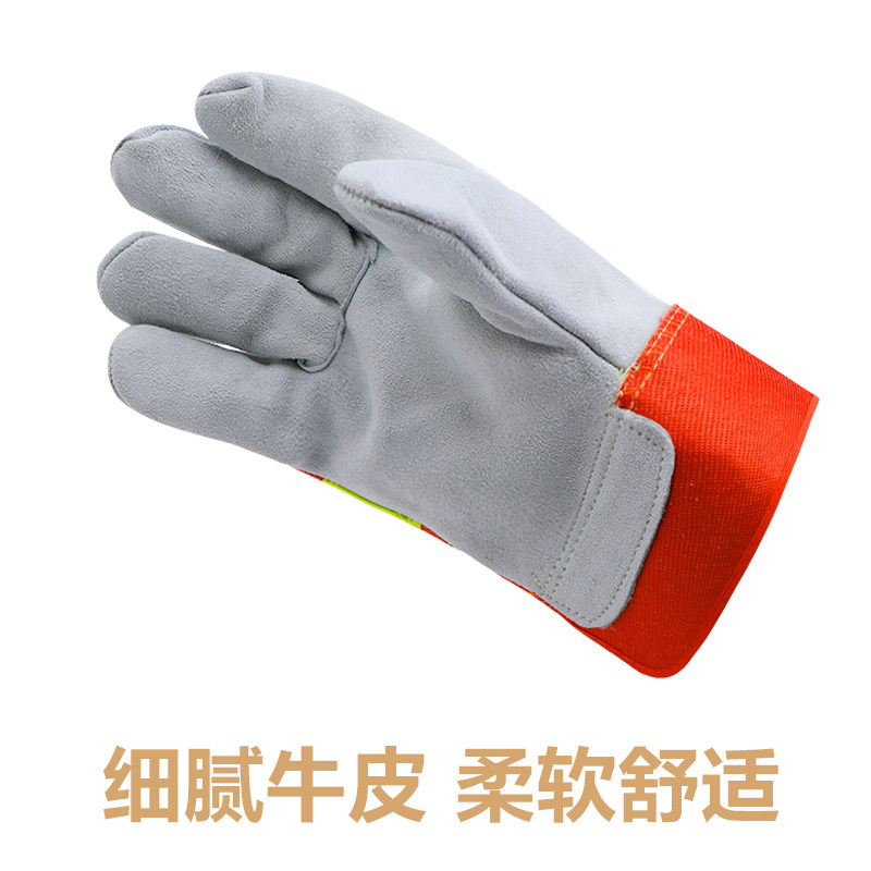Cow Leather Electro-Welded Gloves Short welding work welding heat insulation and wear resistant and high temperature resistant fire protection wire fireproof star gloves