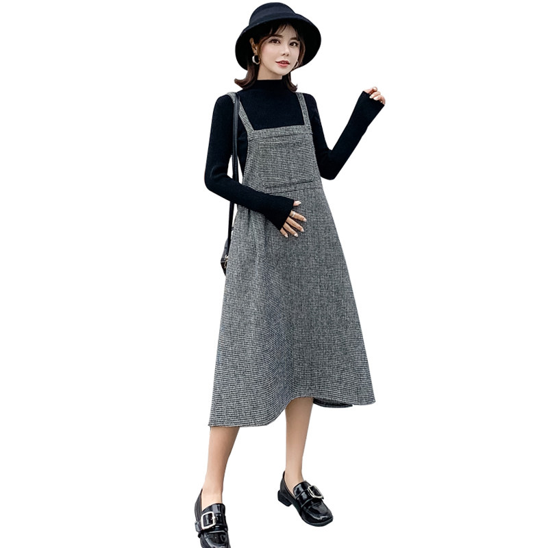 Pregnant woman Libra dress Autumn dress 2023 new suit autumn and winter medium long braces skirt boomer fur coat two sets-Taobao