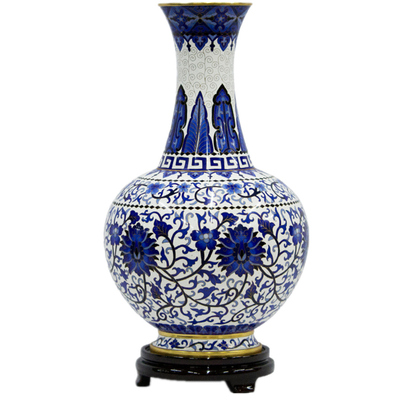 Cheng Teacher Beijing Jingtai Blue vase swing piece Tangle Branches Lotus Thread Bottle Copper Tire Field Grinding Light Boutique Commemorative Collection-Taobao