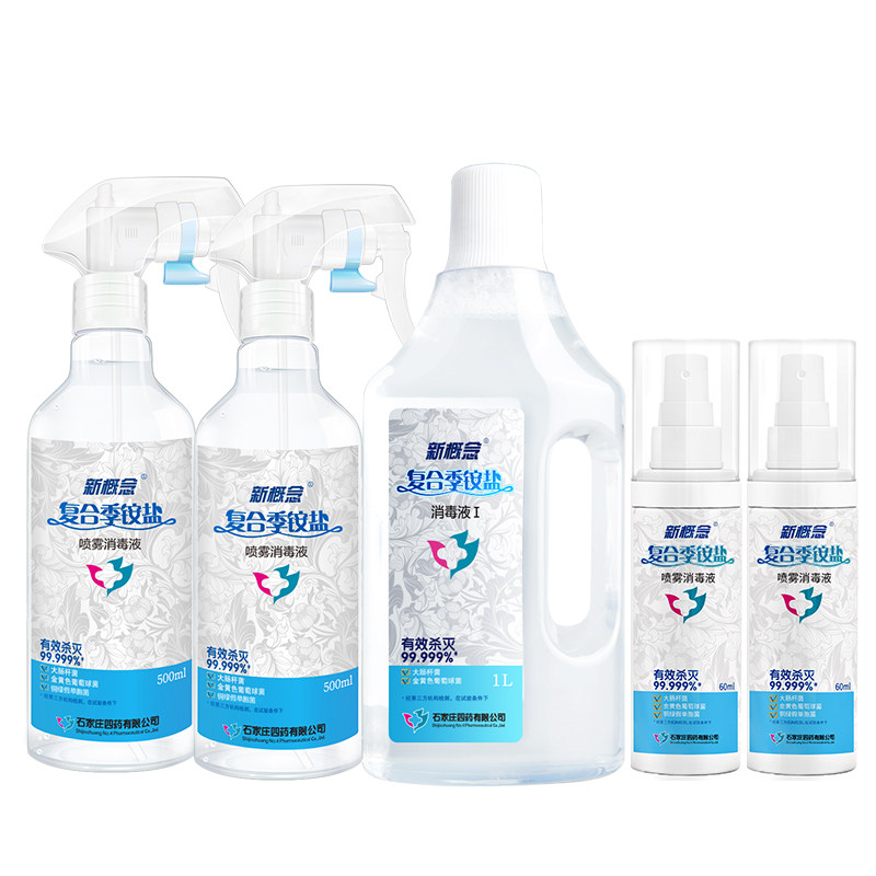 New concept of quarterly ammonium salt disinfectant household package 1L 500ml*2 60ml*2 clothing sterilization fluid without alcohol