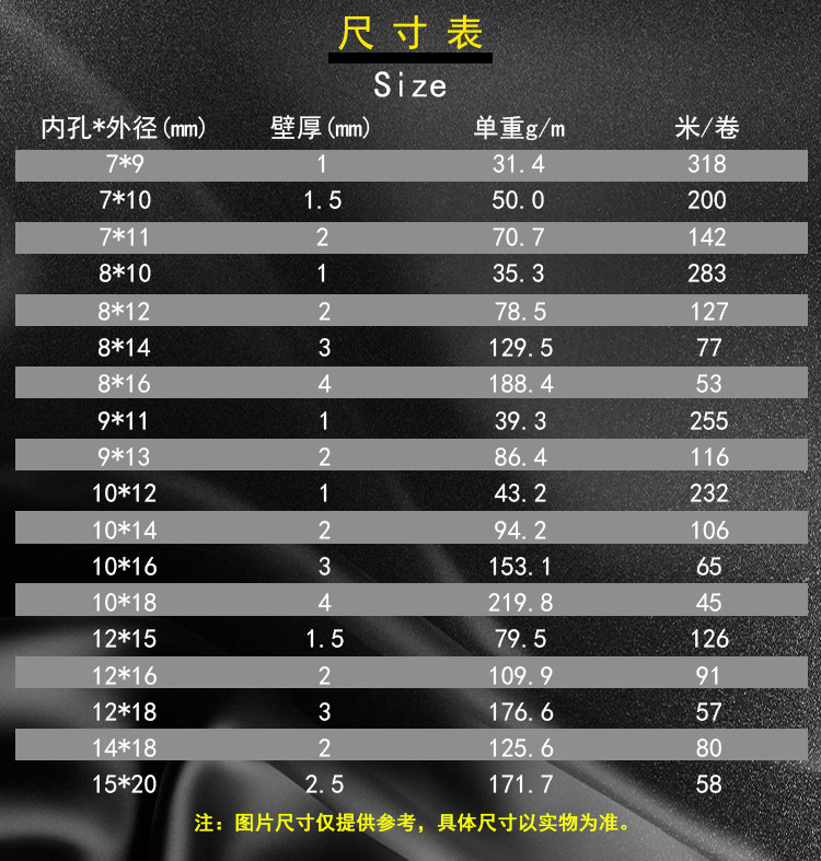 7*9 wall thickness 1mm7*10 wall thickness 1 5mm7*11 wall thickness 2mm8*10 wall thickness 1mm8*12 wall thickness 2mm8*14 wall thickness 3mm8*16 wall
