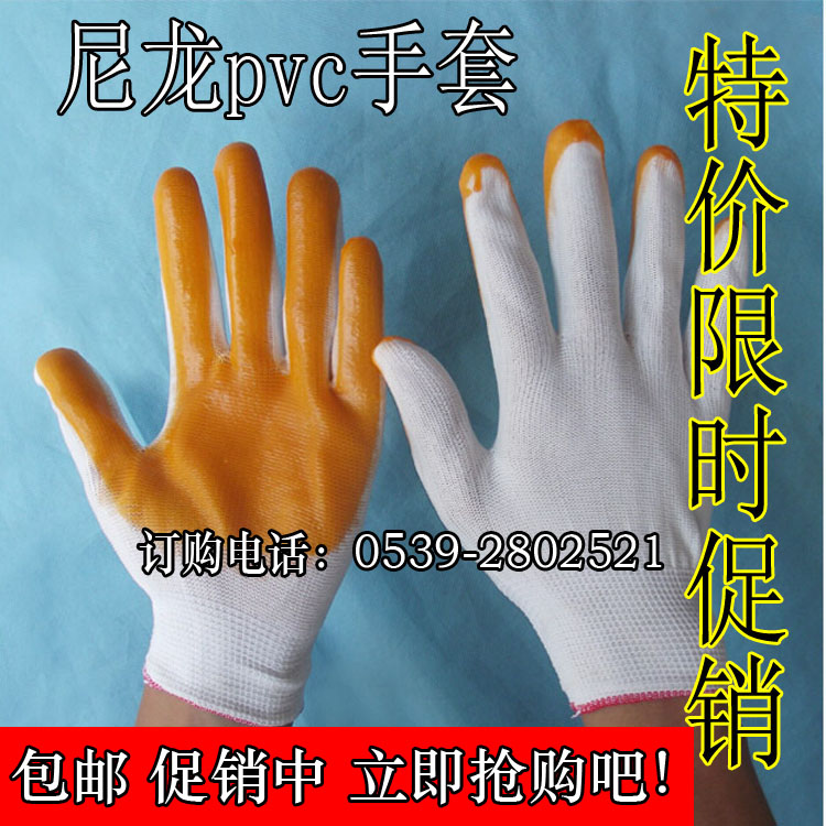 Manufacturer direct marketing pvc gloves durable gloves nylon gluing hanging glue-soaked rubber and rubber protection gloves anti-oil