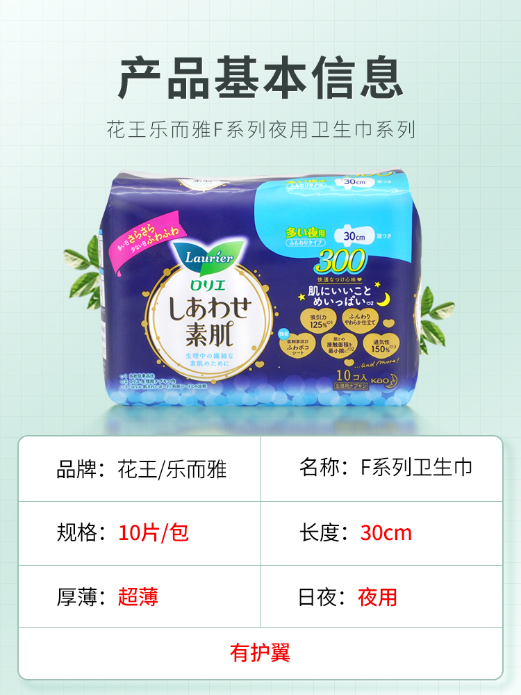 Imported Japanese Flower Wang Lean And Ysanitary Cotton Night with F cotton flexo-wing instant suction ultra-thin 30cm10 sheet