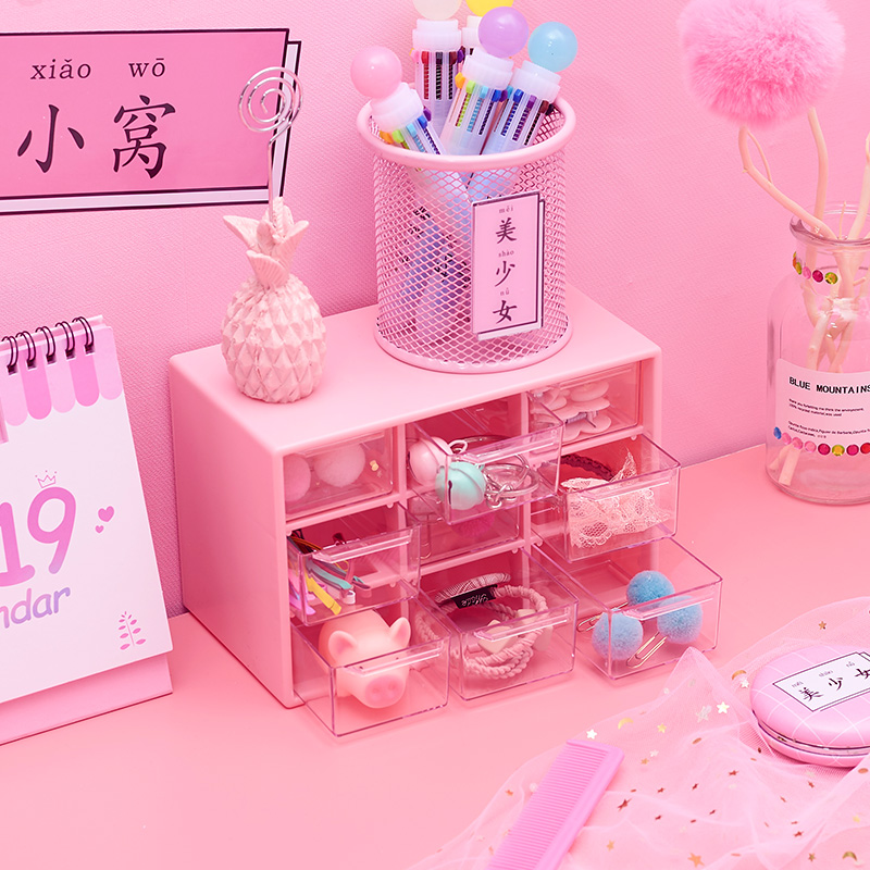 Mini desktop Drawer Containing Box Girl Hearts Small Storage Box Transparent First Accessories Box Nine G Finishing Box Plastic Basket