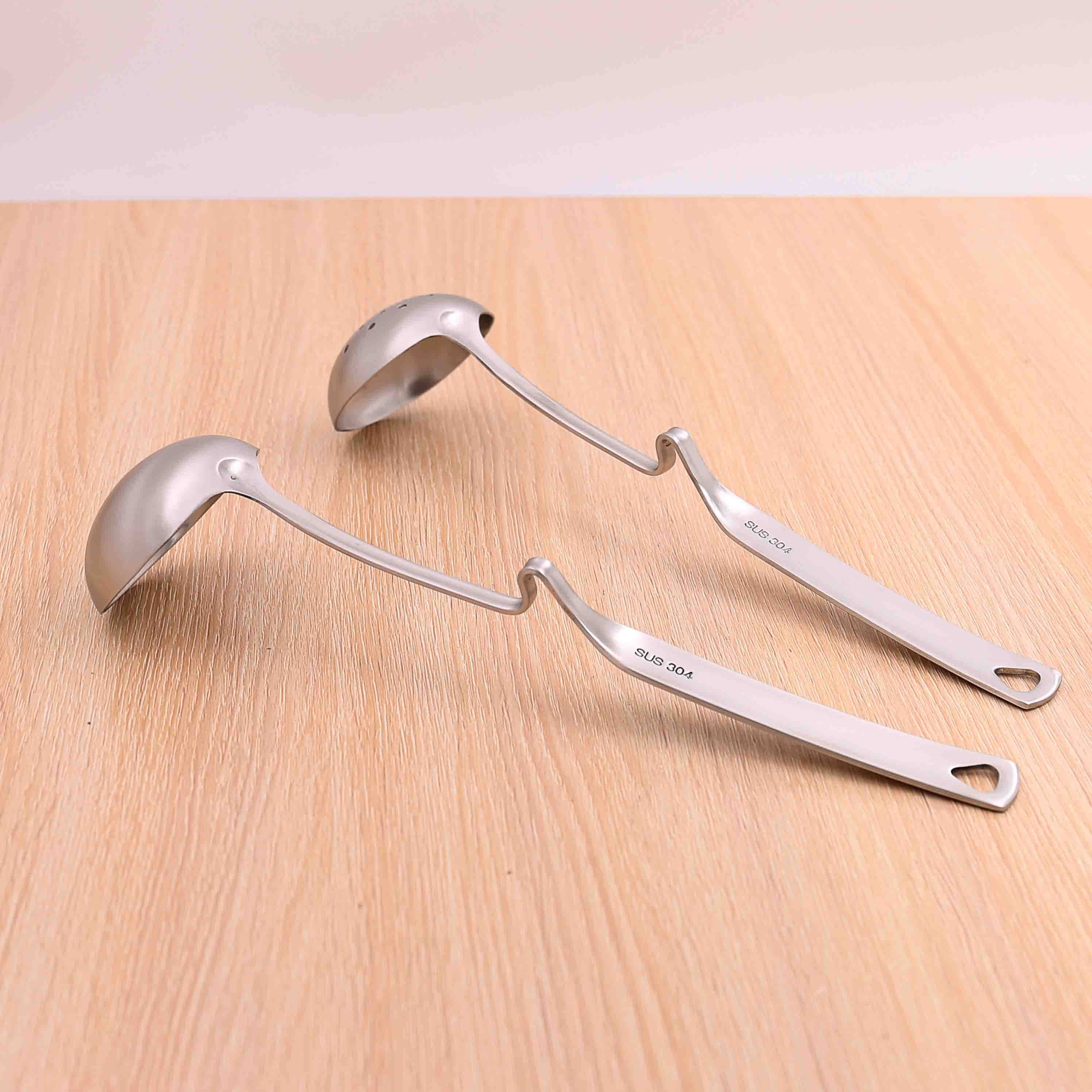 Thickened 304 Stainless Steel Soup Spoon Hot Pot Spoon Drain Spoon Large Soup Crust Long Handle Hot Pot leaky spoon suit Soup Porridge Spoon