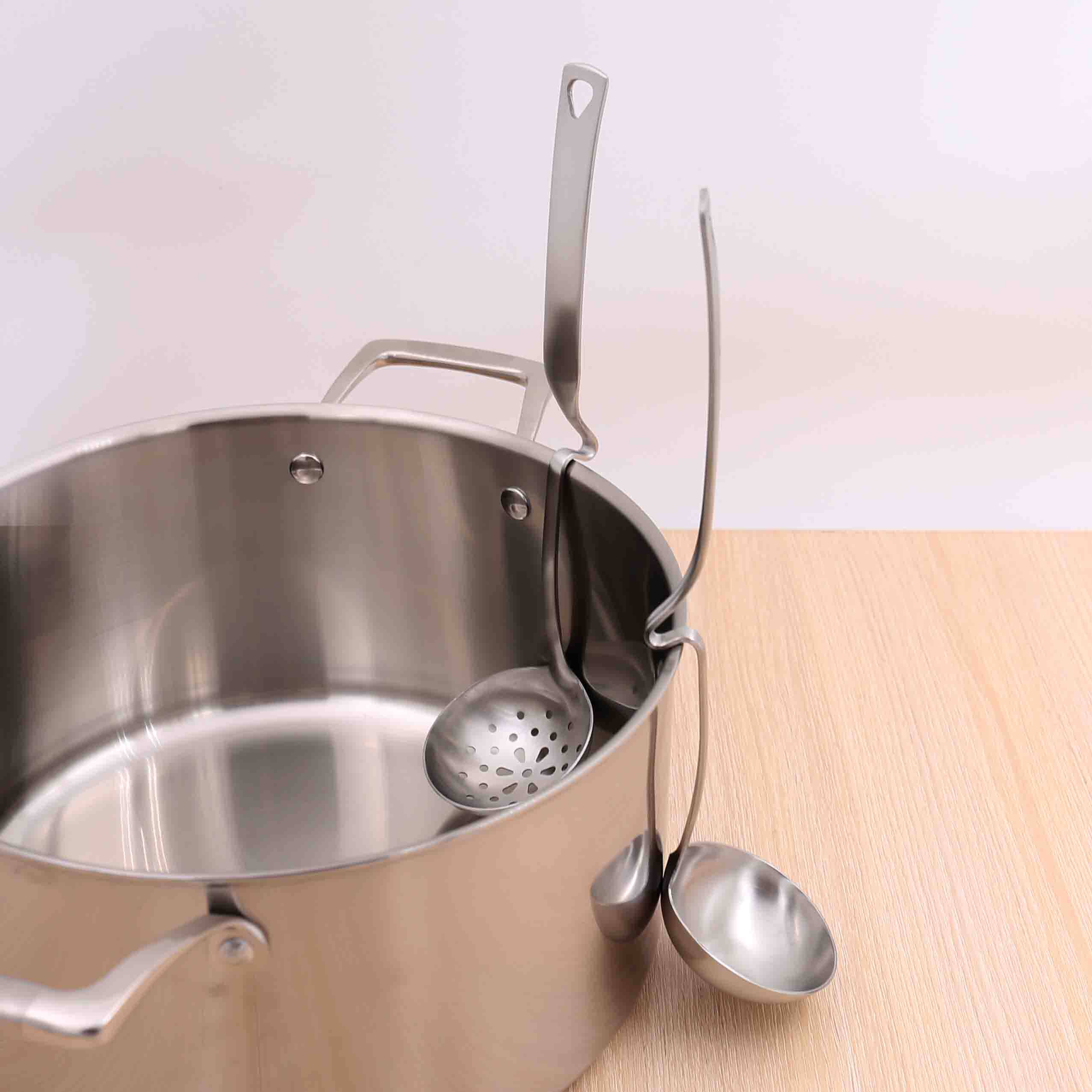 Soup spoon with a spoonful of spoons and a leaking spoon.