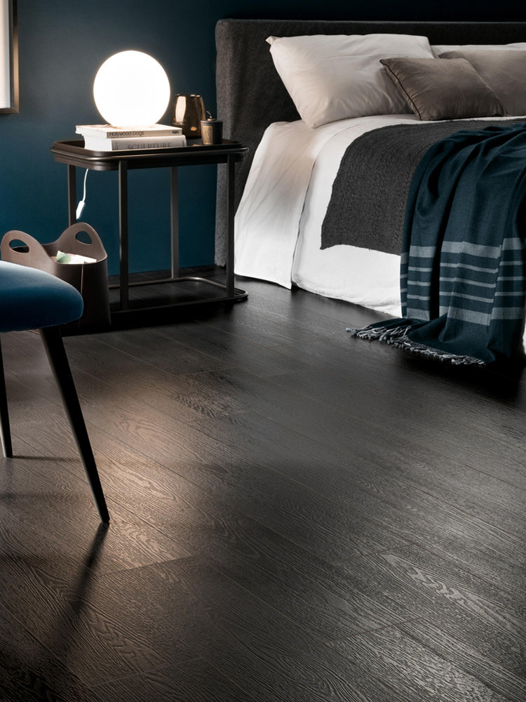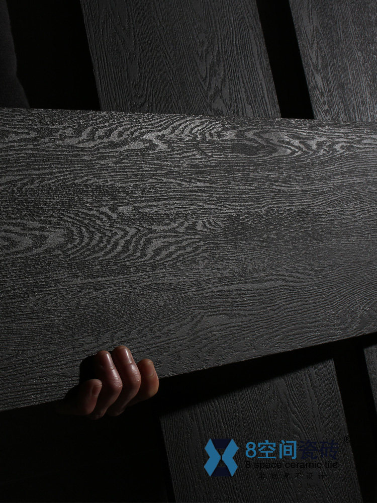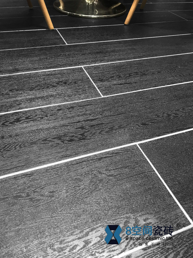 8 space through body black wood grain tiles Living room Dining Room Clothing Dining Room Folk chain All Porcelain Black Wood Floor Tiles