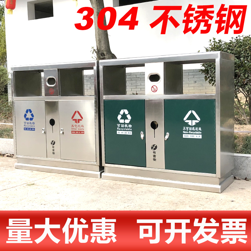 outdoor trash can stainless steel large outdoor fruit leather case garbage three-four classification dustbin sanitation 304 double groove