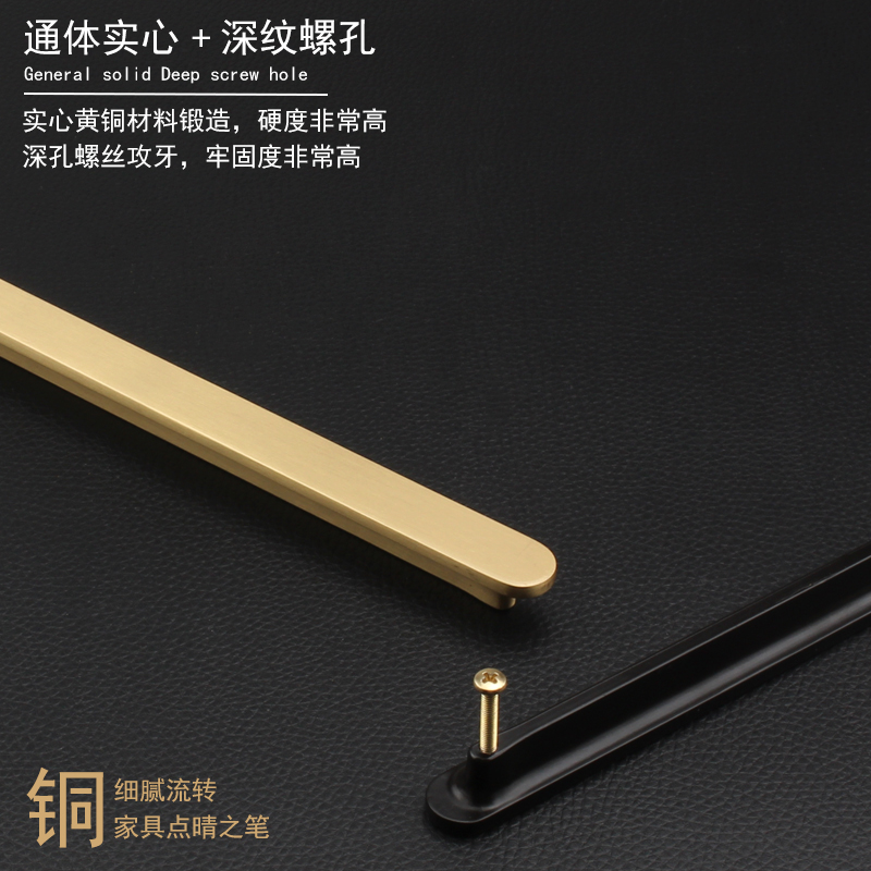 Light luxury copper wardrobe pull hands minimal north European cupboard door gold brass single hole handle all-brass handle