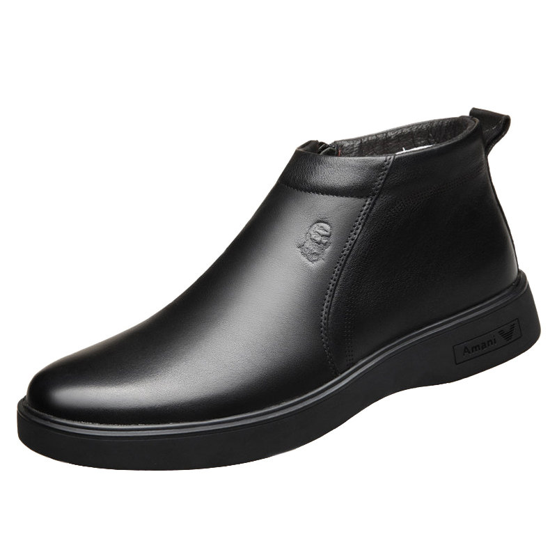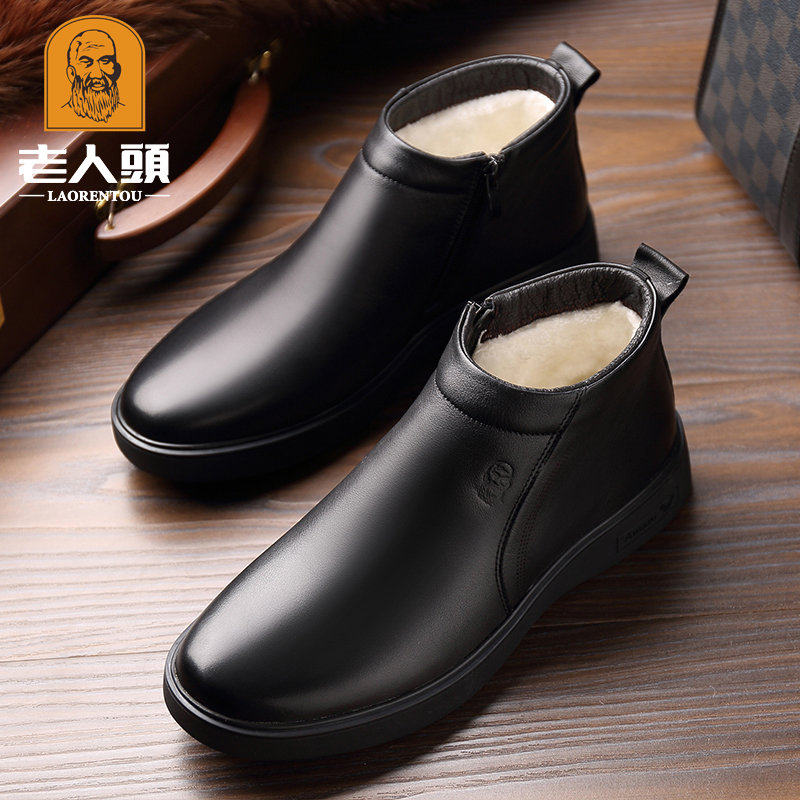 Winter new old man's head cotton shoes true wool men high cylinder leather shoes genuine leather warm and thick bottom aged daddy shoes