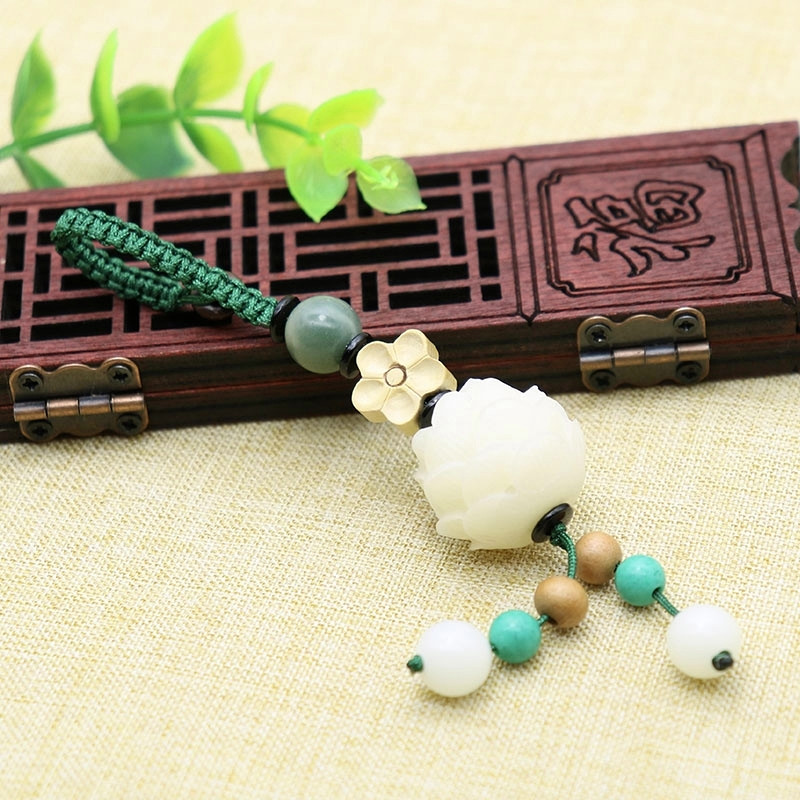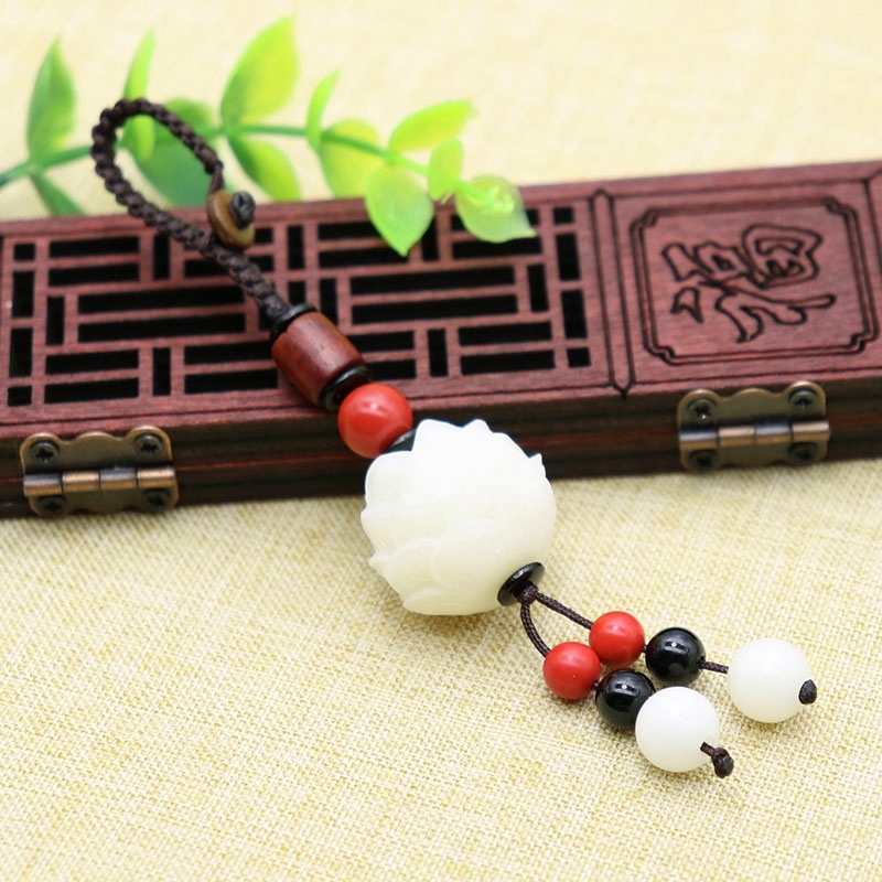 Car pendant Bodhi lotus ornament Wen playing white jade Bodhi Artisanal Engraving Diy Pendant Key Buttu Bag Pendant-Taobao