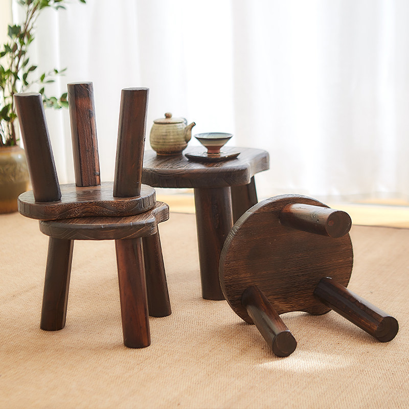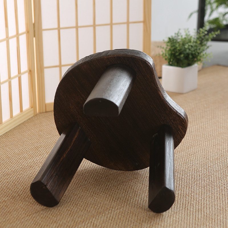 Crescent stool round wooden stool changing shoes stool Japanese style home bench three-legged mini small wooden dwarf stool children solid wood tea table stool-Taobao