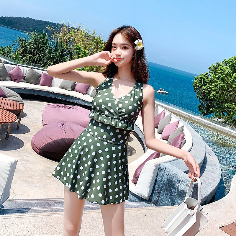 Swimsuit Women's conservative Belly Button Slim Fit to gather even body dress Korean version Student Soak Hot Springs Big Size Swimming