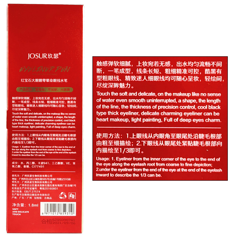 Joser Ruby Eyeliner Liquid Pen with Big Eyes Waterproof, Sweat-proof, Non-Dyeing, Long-lasting, Never Take off Makeup, New Hand Hard Head Pen